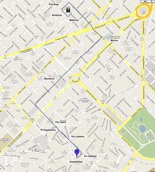 El dia 6 d’octubre es va fer públic el recorregut que el Sant Pare farà al llarg de la ciutat de Barcelona, en el conegut papamòbil, el dia 7 de novembre d’enguany, pel matí. Era tota una incògnita perquè es barrejaven diverses possibilitats. Finalment s’ha anunciat que SS Benet XVI sortirà de la Catedral a les 9 hores, tot seguit enfilarà la Via Laietana, seguirà per Pau Claris fins al carrer de La Diputació, després tot recte fins el carrer Marina on girarà a l’esquerra, passant per davant de la façana del Naixement de la Basílica de la Sagrada Família, rodejant-la tot al voltant pel carrer Provença, després baixarà pel carrer Sardenya passant per davant de la façana de la Passió i tot girant per l’esquerra del carrer Mallorca, s’aturarà per entrar pel nou accés del temple. D’aquesta manera a les 9.30 s’inicien els actes en l’interior de la Basílica amb la recepció amb SM els Reis D. Joan Carles i Da. Sofia, seguint després amb els actes litúrgics del programa oficial previst.