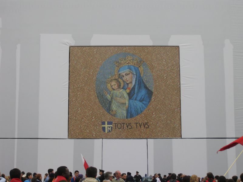 Quina manera més estupenda de començar el mes de Maig! Joan Pau II va triar com a lema del Pontificat aquell “Totus Tuus” que és una referència a la Verge i va voler que en el seu escut pontifical estigués present Maria, simbolitzada en aquella M sobre el fons blau. Ens podem encomanar a la intercessió del nou beat perquè ens ajudi a estimar també molt a la Mare de Déu i refugiar-nos en la seva poderosa intercessió per ser fidels a la missió que cada un de nosaltres hem d’exercir en el món.