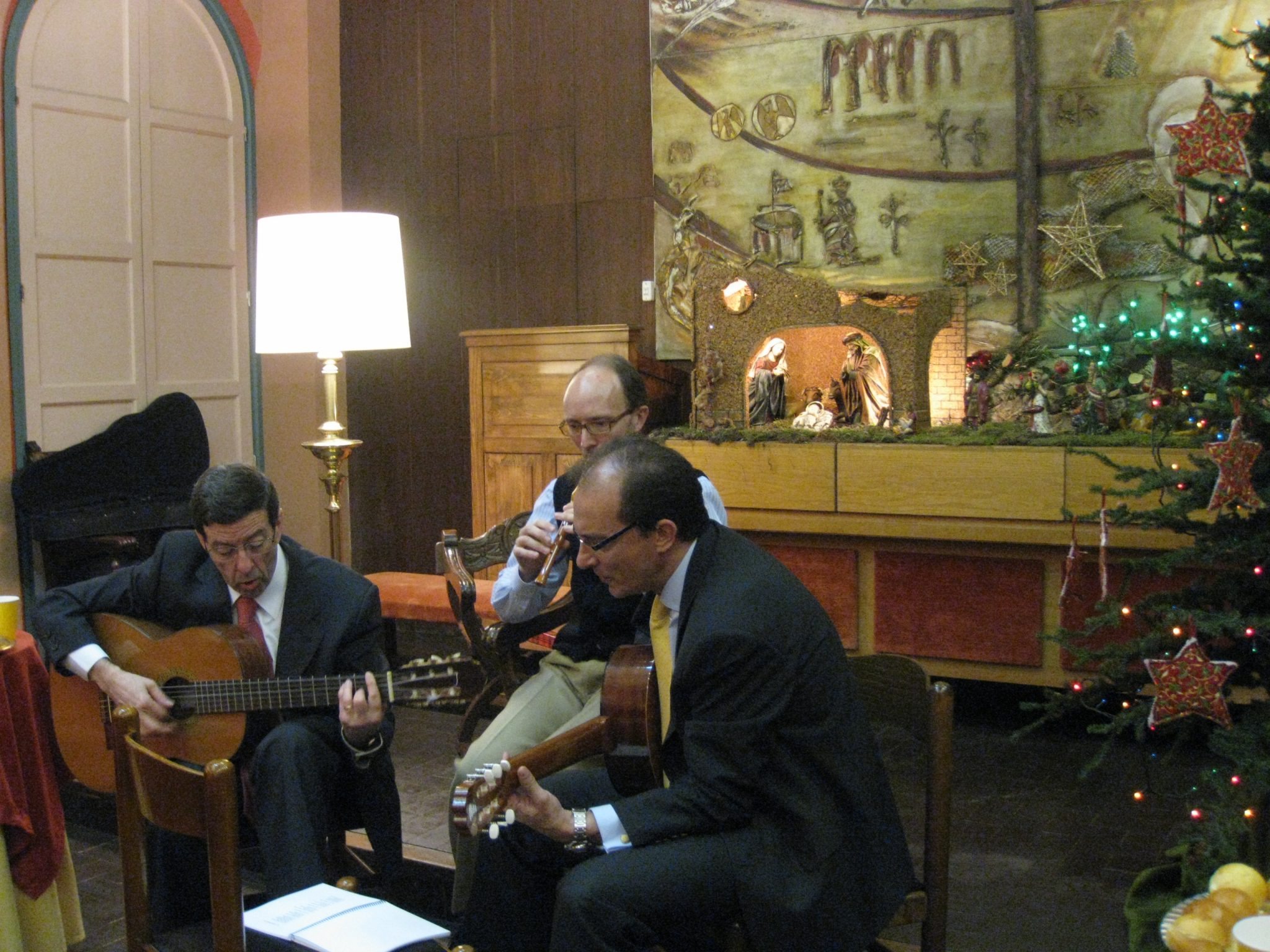 També van instal·lar un pessebre en la sala d’actes, lloc on després de la santa missa tot plegats ens vam reunir per tastar un sobri ressopó. Allí l’organista de la Casa, amb d’altres col·laboradors, van tocar a les guitarres i a la flauta un munt de nadales que molts vam poder seguir amb els cançoners que ens havien facilitat. A l’acabar ens vam acomiadar desitjar-nos a tots i a les nostres famílies unes bones festes de Nadal!