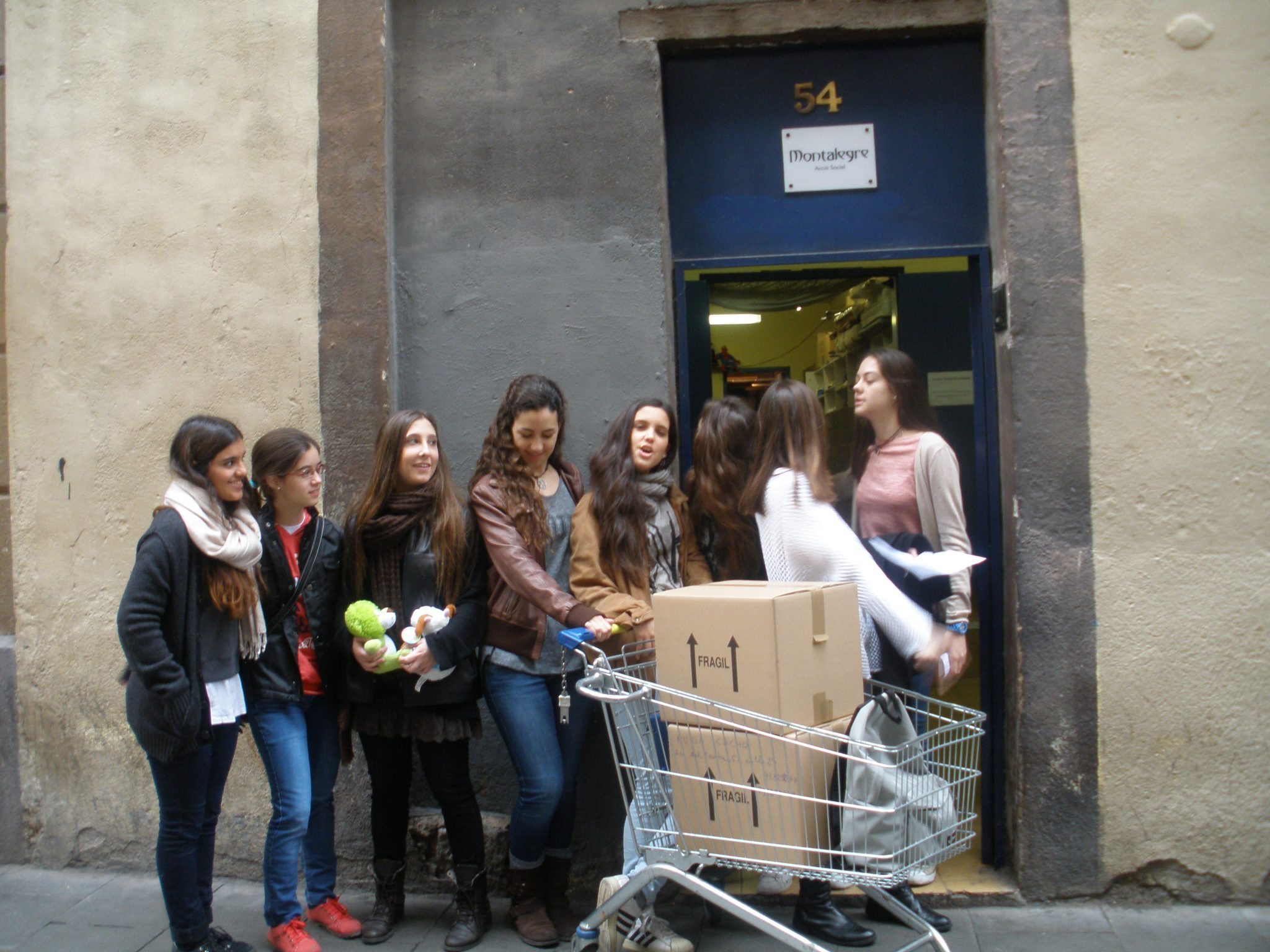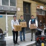 12 Centres Educatius han aportat centenars de voluntaris que ens ajudaren a muntar els lots i repartir-los. Un gran grup de nois i noies varen ocupar els carrers del Raval amb carros plens de caixes i molta, molta alegria.