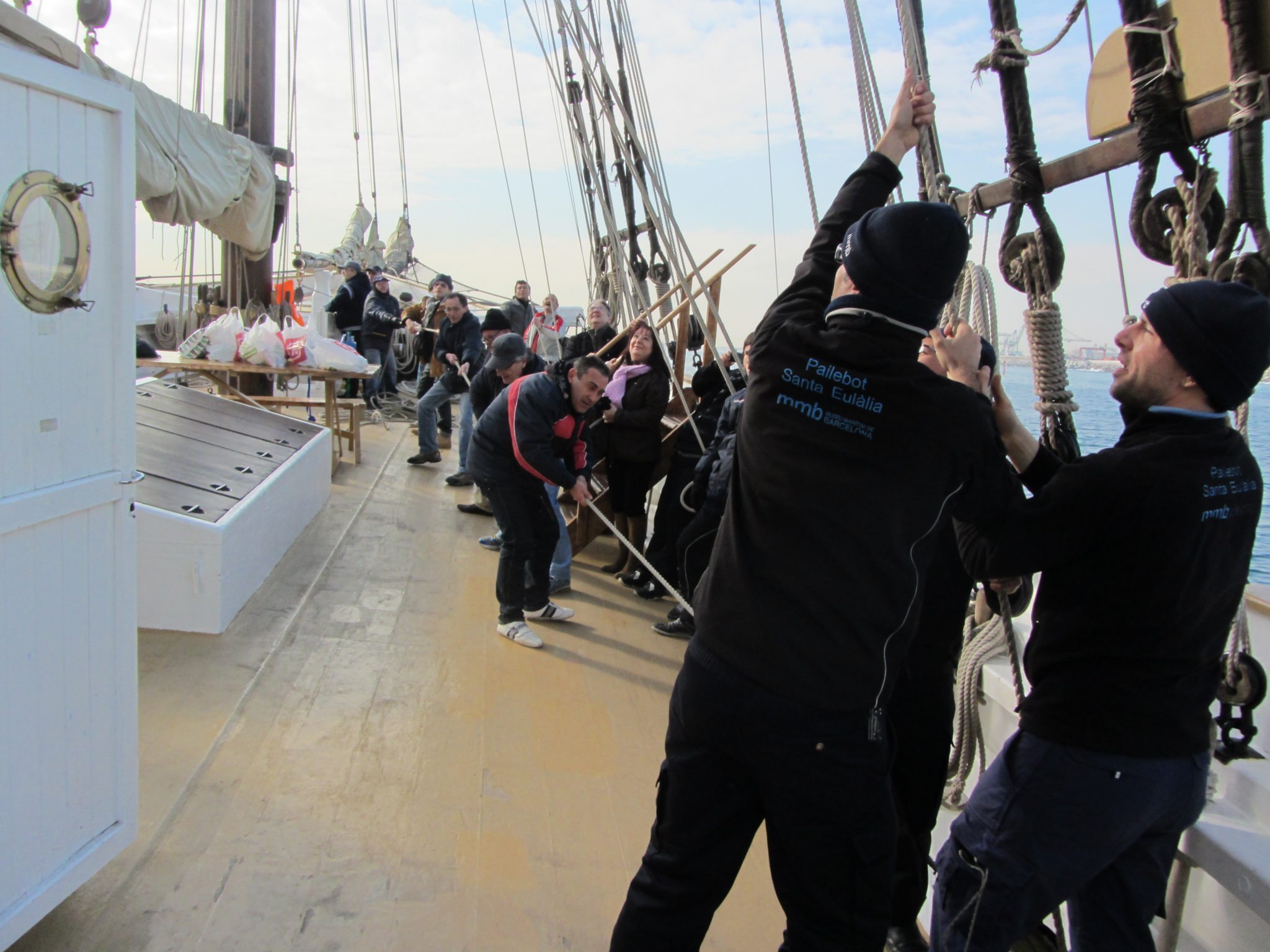 Alguns membres del grup de Formació i Microcrèdits d’Acció Social Montalegre el passat mes de març es van embarcar en un preciós veler per convertir-se en intrèpids llops de mar per un dia. Malgrat el dia fred i l’estat del mar, no van dubtar a confondre’s amb la tripulació per lligar caps i arriar veles.