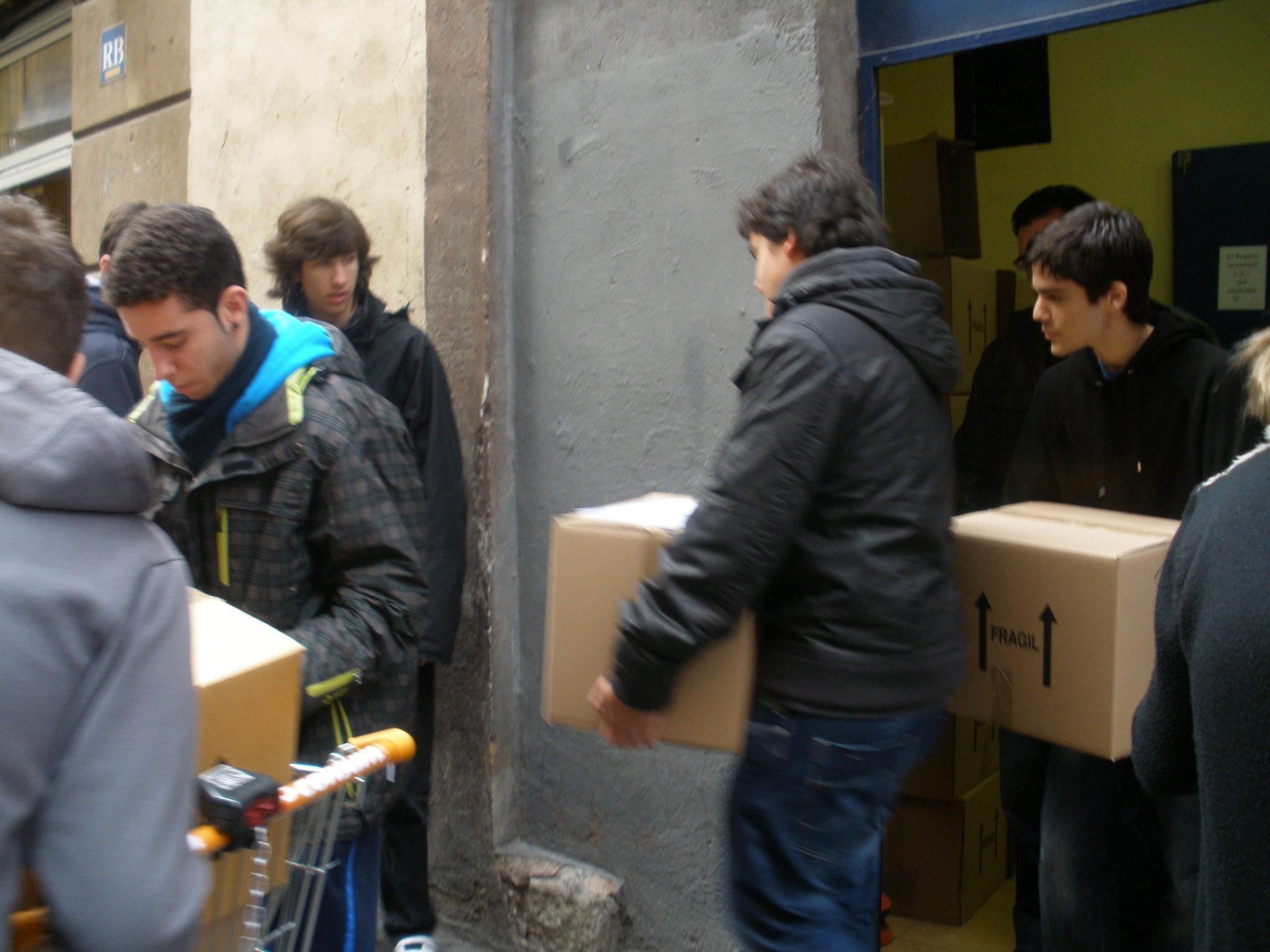 12 Centros Educativos nos brindaron su apoyo con centenares de voluntarios montando y repartiendo lotes, llenando las calles del Raval con carros llenos y mucha, mucha alegría.