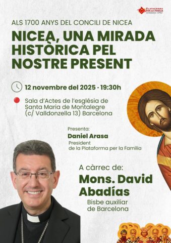 El dimecres 12 de novembre de 2025, conferencia amb el títol Nicea, una mirada Històrica pel nostre present a càrrec de Mons. David Abadías, bisbe auxiliar de Barcelona, a les 19.30 a la sala d’actes de Montalegre.