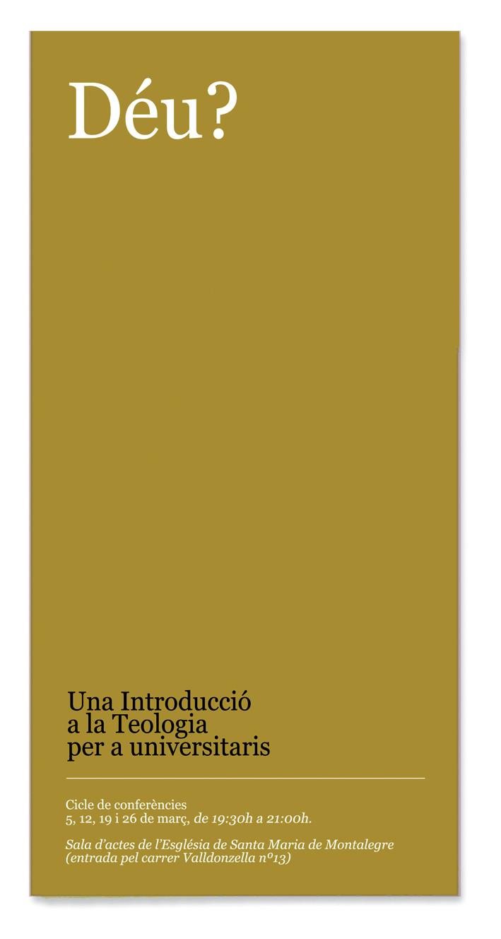 El día 5 de marzo se inicia el primer ciclo de conferencias de Teología para Universitarios en la Iglesia de Santa María de Montalegre. Este ciclo presenta el tema de la Teología, es decir, aquella disciplina universitaria que se ocupa del estudio de Dios, como una oportunidad para los universitarios de todas las ramas, con la finalidad de establecer un primer contacto con la teología cristiana, como disciplina científica, con expertos de primer nivel.